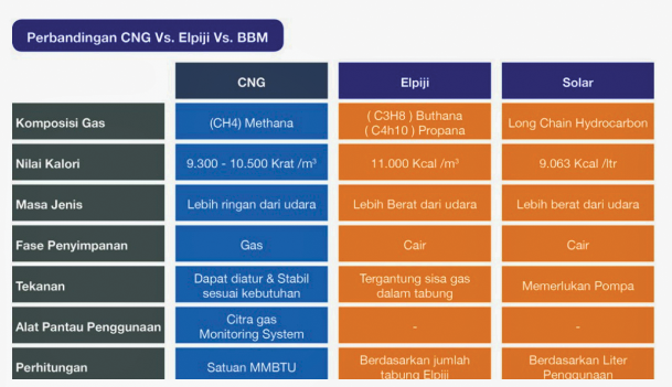 CNG lebih hemat dibanding bahan bakar cair, baik dari segi harga per unit energi maupun konsumsi bahan bakar